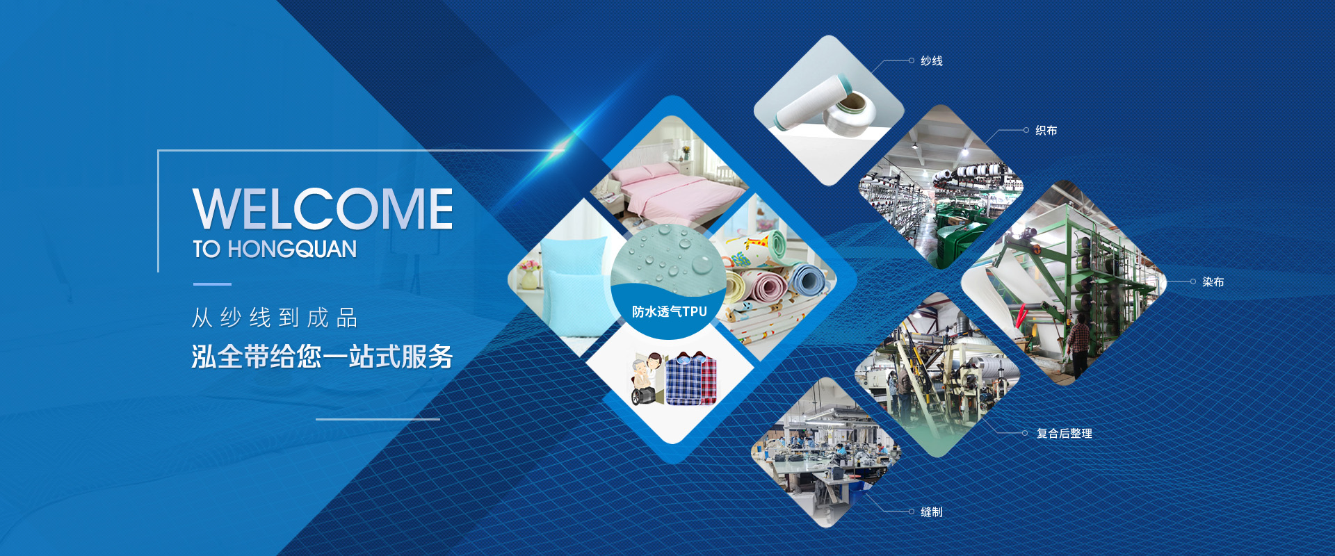 上海泓全復合面料有限公司始創于2009年,是集研發、設計、生產、銷售、服務為一體的織布復合加工生產型企業。專業從事家紡面料、服裝面料、箱包面料、地毯面料和醫療護理、充氣產品、家居用品、廣告布等各種面料的復合。公司目前生產的成品涵蓋家紡系列、家居系列、老年人和嬰幼兒護理系列、醫療護理系列等。公司坐落于上海市嘉定工業區,西鄰昆山,北鄰太倉,交通便利,廠房面積達10000多平方米。